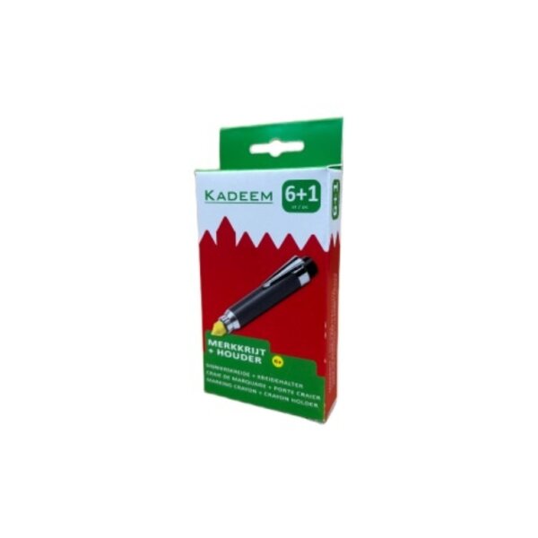 Dieses praktische Set enthält 6 Stück gelbe Kadeem Markierkreide inklusive einem exakt passenden Kreidehalter. Ideal für Profis, die sauber, effizient und präzise arbeiten möchten.