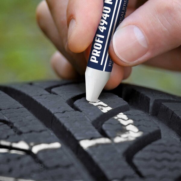De Lyra Profi 4940 Heavy-Duty krijt is een industrieel krijtje van Ø 9,5 mm met een lengte van 90 mm, beschikbaar in wit en geel. Gemaakt van een gepigmenteerde wasmengsel, speciaal ontwikkeld voor het markeren van autobanden, EPDM-dakbedekking en andere ruwe of gladde oppervlakken.