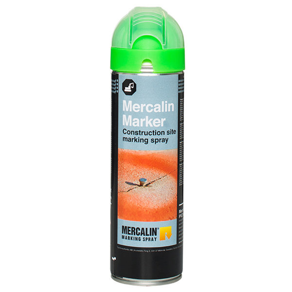 Mercalin marker (fluor) is een opvallende markeringsverf voor het gebruik bij de aanleg van wegen, gebouwen, tunnels en mijnen. Een veel gebruikte spuitbus in de geodesie. Wordt voornamelijk buiten gebruikt en is voorzien van een veiligheidskap. Eenvoudig in alle standen te gebruiken dankzij het 360° ventiel.